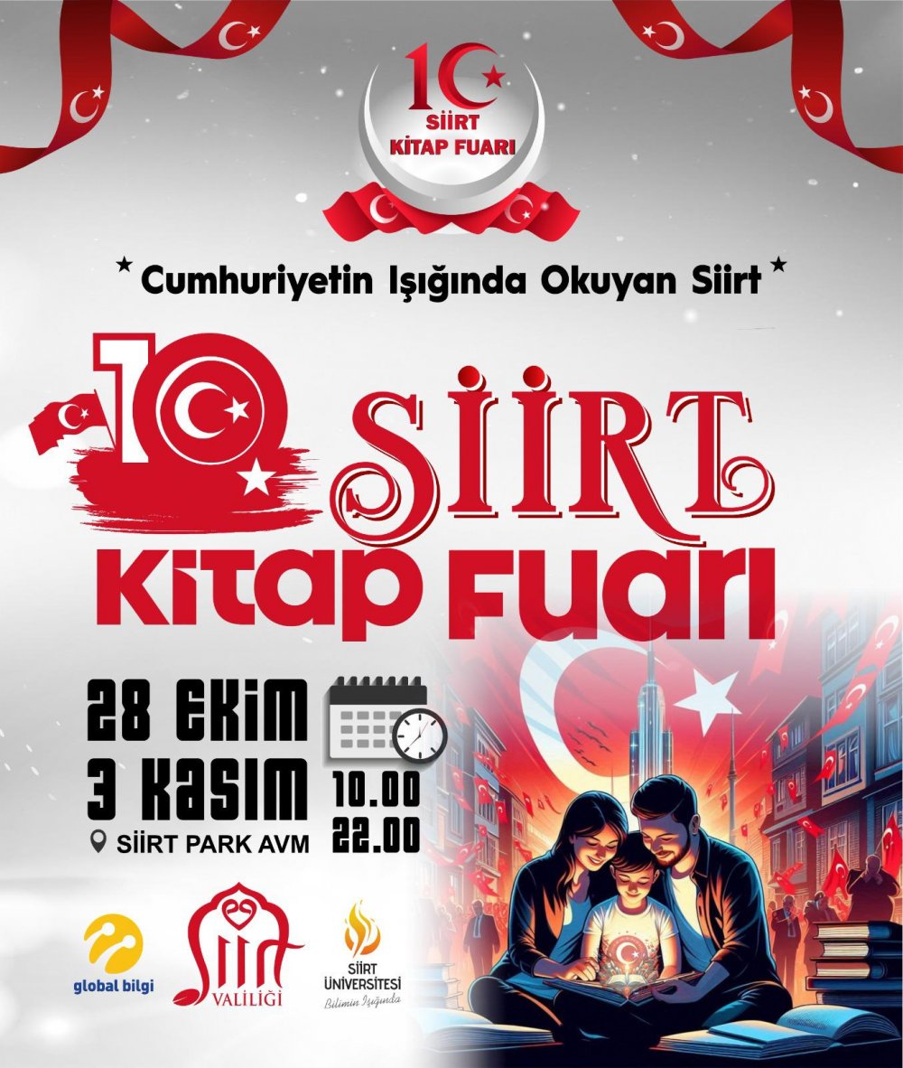 Siirt Valisi Dr. Kemal Kızılkaya, Cumhuriyetimizin 2. Yüzyılı ve Cumhuriyet Bayramı kutlamaları kapsamında bu yıl 28 Ekim - 3 Kasım 2024 tarihleri arasında gerçekleştirilecek olan ‘10 Siirt Kitap Fuarı’na tüm vatandaşları davet etti.