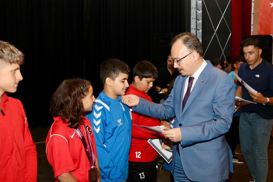 Vali Dr. Kemal Kızılkaya eşi Nurten Kızılkaya ile birlikte 2023-2024 eğitim-öğretim yılı sene sonu kapanış programına katıldı.