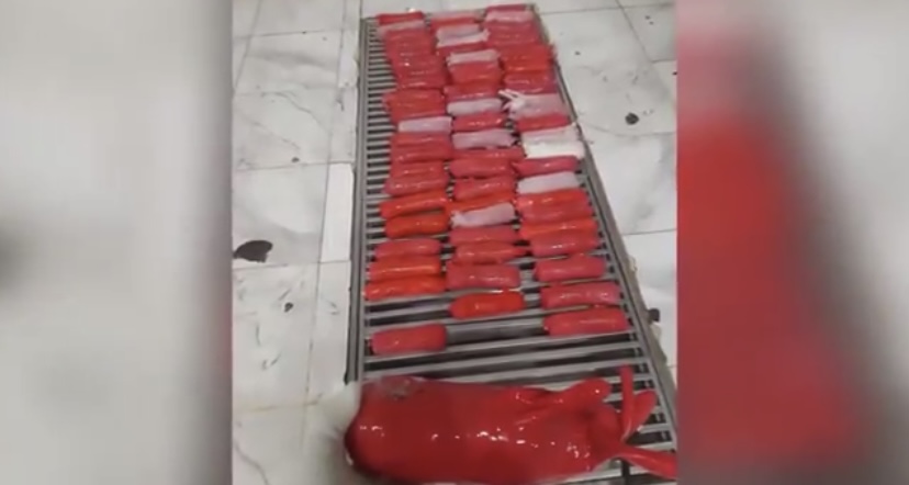Yapılan detaylı incelemelerde, 29 adet küçükbaş hayvanın karın boşluklarının içine gizlenmiş halde toplam 54,6 kilogram metamfetamin uyuşturucu maddesi ele geçirildi.