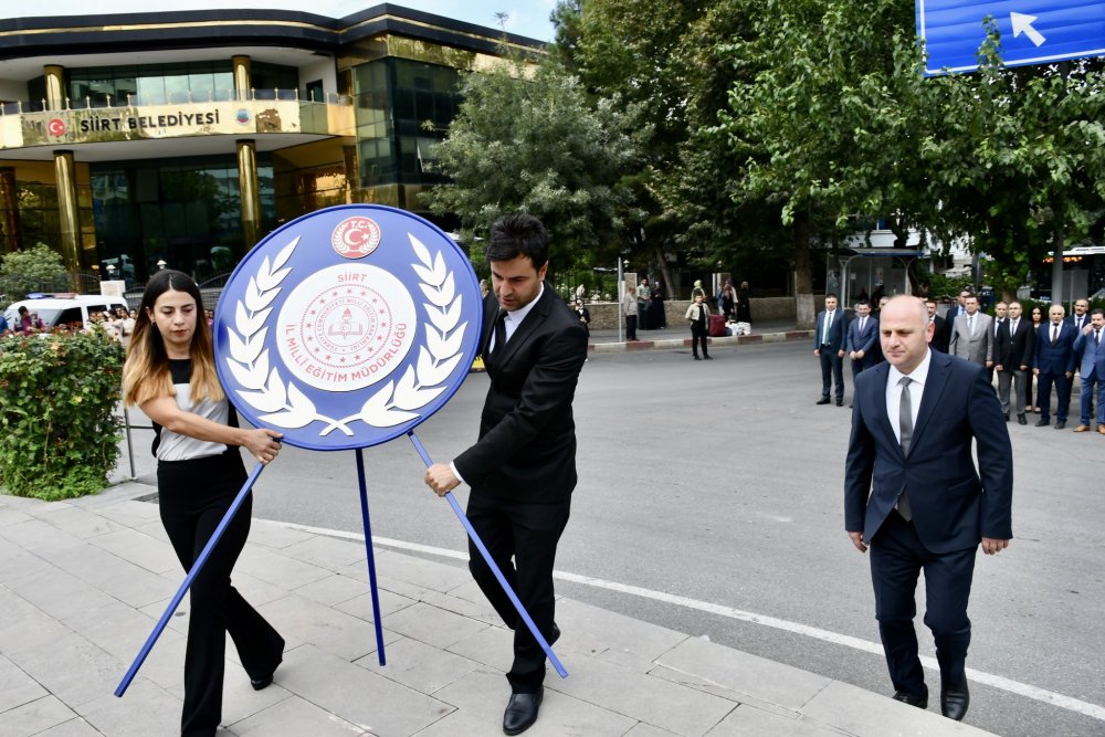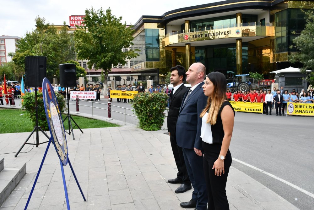 İl MillÎ Eğitim Müdürü Salih Sadoğlu'nun Atatürk Anıtı'na çelenk sunumuyla başlayan tören, saygı duruşu ve İstiklal Marşı'nın okunmasıyla devam etti. Çelenk sunma töreninin ardından yeni eğitim öğretim yılının başlaması nedeniyle Şehit Kürşat Güneş İlkokulunda bir takım etkinlikler düzenlendi.