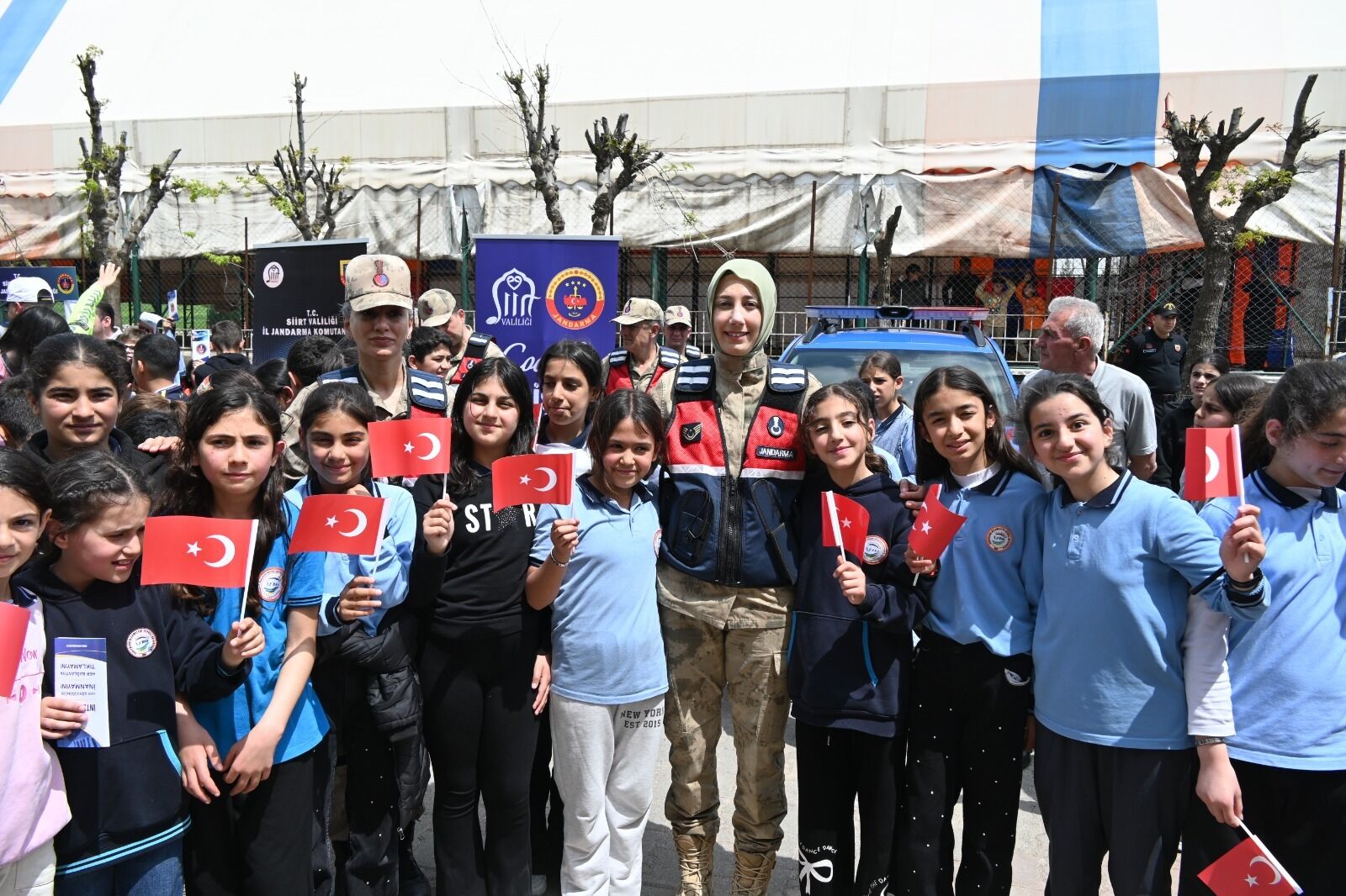 Programın sonunda İl Jandarma Komutanlığı bünyesinde bulunan “Sınav”, “Yapı” ve “Mantık” isimli görev köpeklerinin gerçekleştirdiği akrobasi gösterileri öğrenciler tarafından ilgiyle izlendi.
