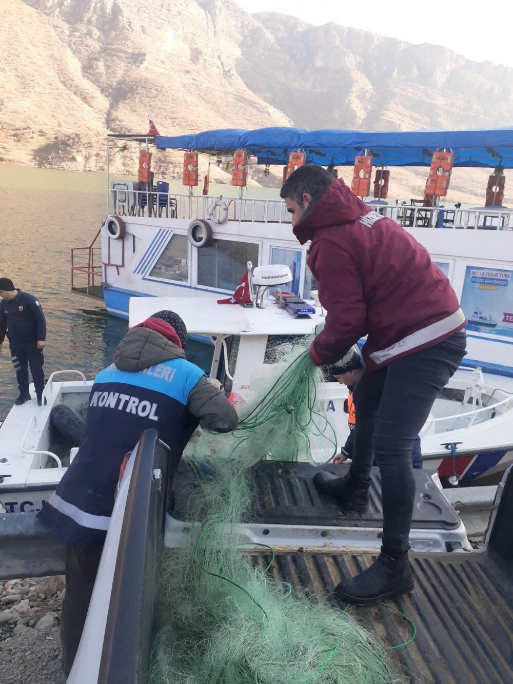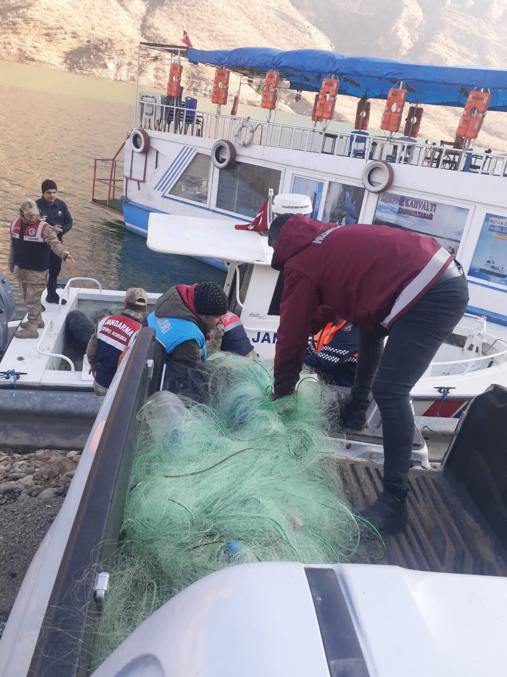 1380 Su Ürünleri kanunu çerçevesinde Siirt İl Tarım ve Orman Müdürlüğü olarak Siirt sınırları içerisinde bulunan baraj, gölet, nehir vb. sularda kaçak avcılığın önlenmesi, balık popülasyonunun korunması ve suların kirliliğine sebep olabilecek durumların engellenmesi/ortadan kaldırılması amacıyla, Ilısu Prof. Dr. Veysel EROĞLU Baraj Gölü üzerinde avlakiye için kiralanmamış sahada Siirt İl Jandarma Komutanlığı Çevre, Doğa ve Hayvanları Koruma Timi, Hasankeyf Jandarma Asayiş Bot Komutanlığı ve Gökçebağ İlçe Jandarma Karakol Komutanlığına bağlı ekiplerle koordineli olarak 10 Ocak 2023 tarihinde gerçekleştirilen kontrollerde 20 farklı noktada suda kullanımda olan sahipsiz toplam 3.930 m 20 adet germe balık ağı ile 1 adet şişme bota el konulmuştur.