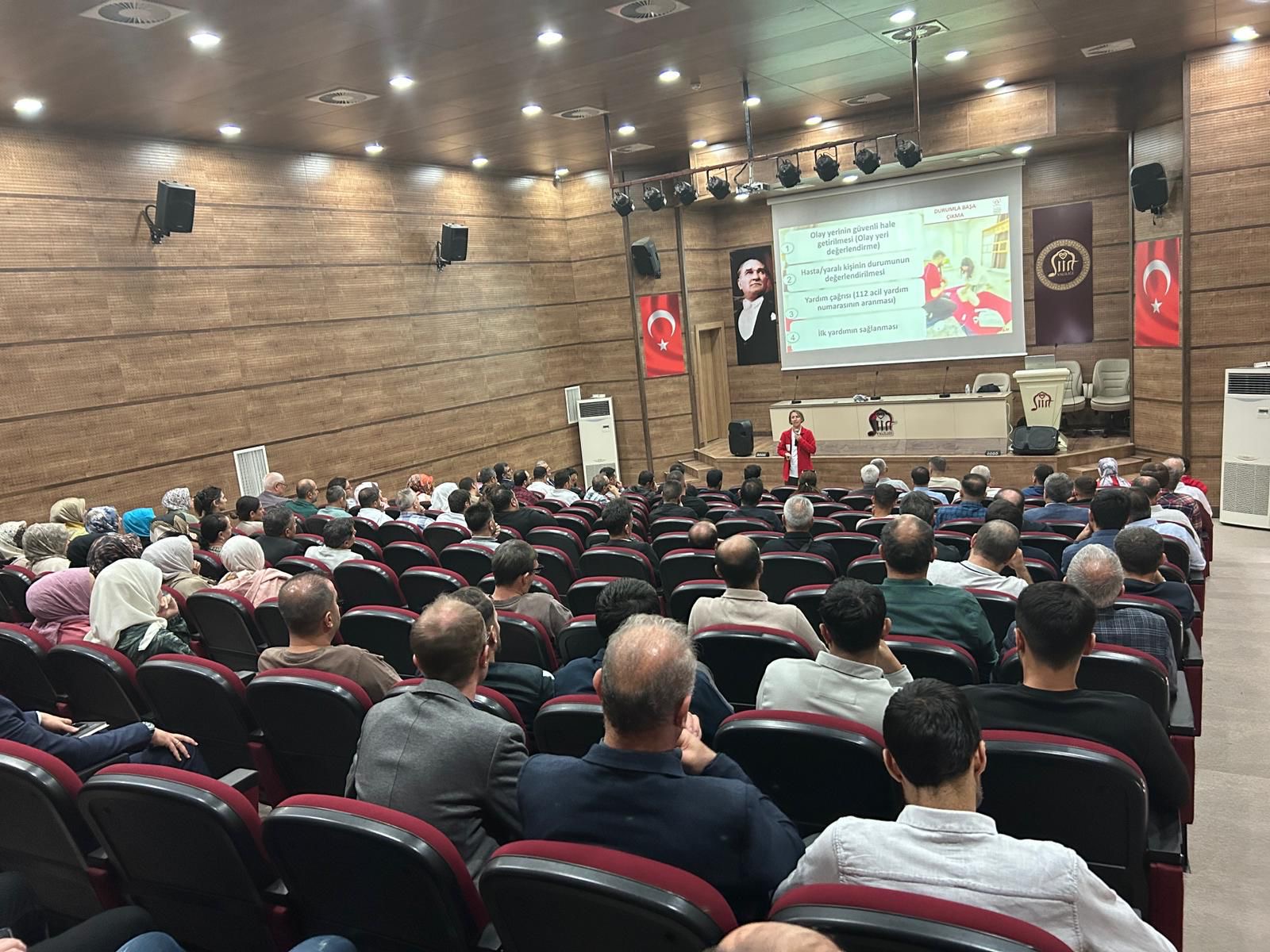 Eğitim sonunda katılımcılara ilk yardım broşürleri dağıtıldı ve uygulamalı örneklerle temel ilk yardım teknikleri gösterildi.