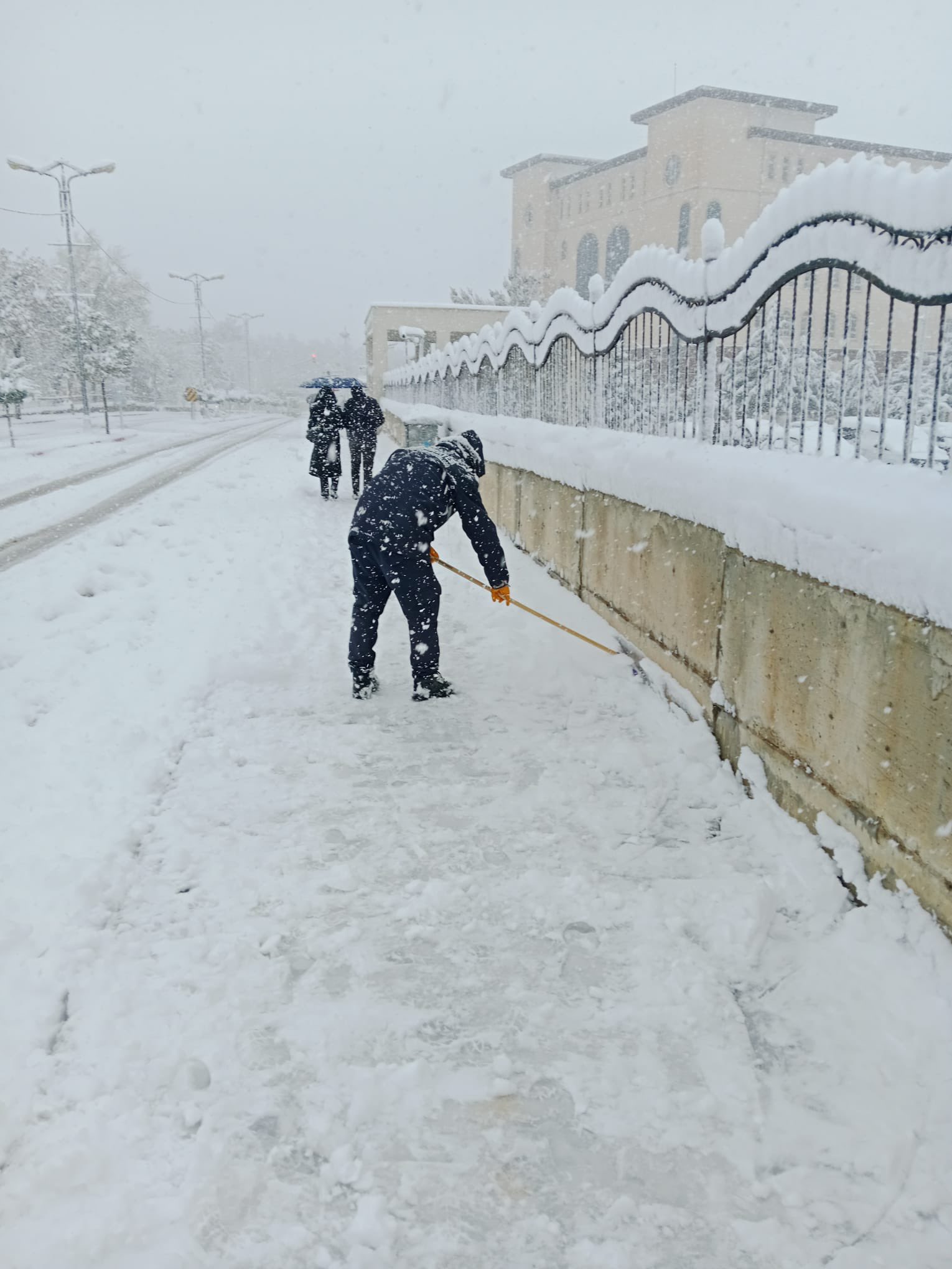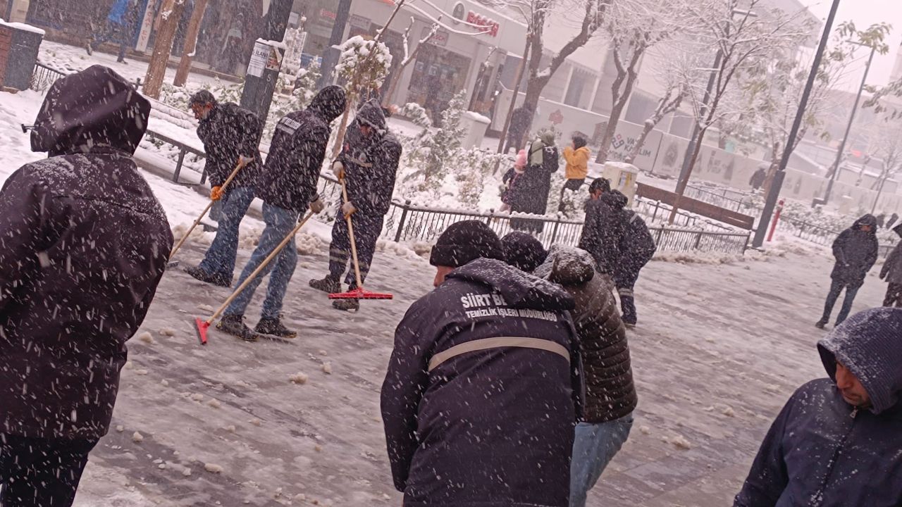 Belediye Temizlik İşleri Müdürlüğü’ne bağlı ekipler, özellikle ana arterler ve şehrin en işlek noktalarından biri olan Güres Caddesi başta olmak üzere birçok noktada yol açma ve kar temizleme çalışmalarını 7/24 esasına göre yürütüyor.