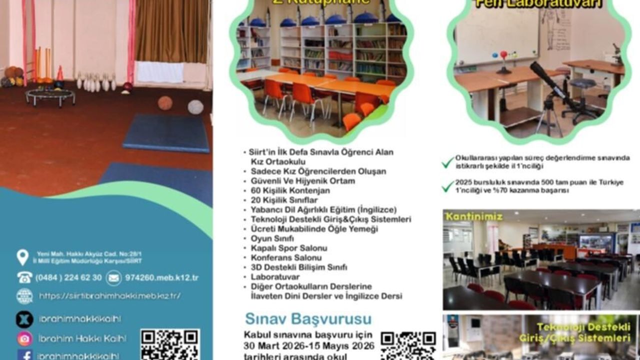 Siirt’te ilk ve tek Kız Proje Ortaokulu olma özelliğini taşıyan okul; deneyimli öğretmen kadrosu, sınırlı kontenjanı, yoğunlaştırılmış yabancı dil eğitimi ve il genelindeki akademik başarılarıyla dikkat çekiyor.
