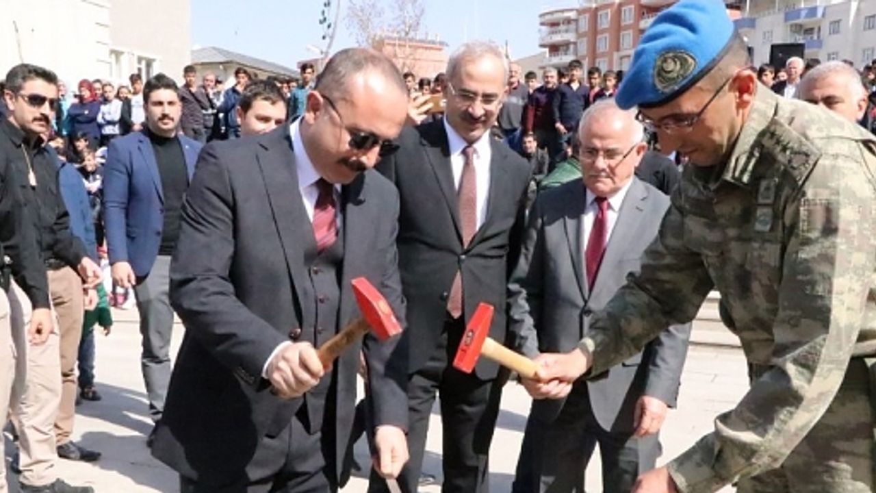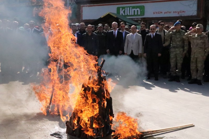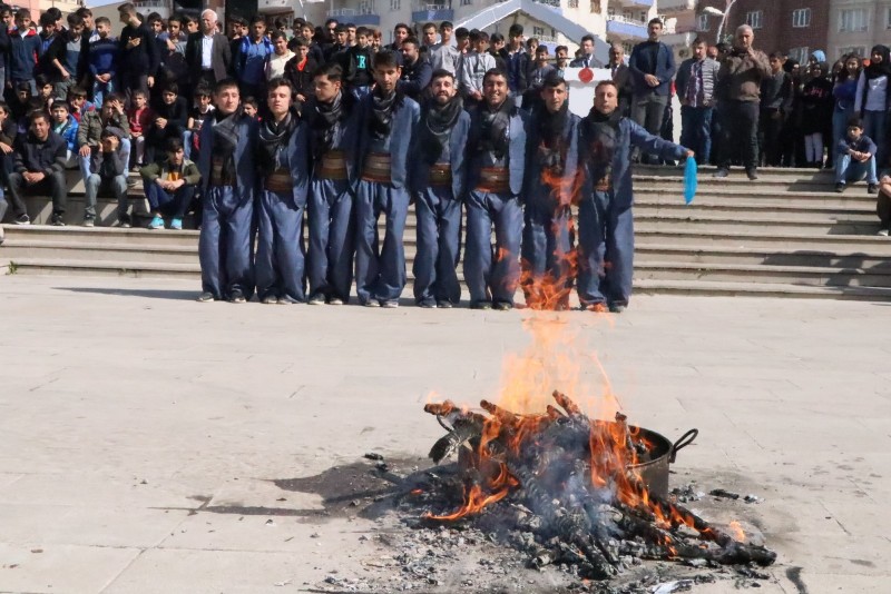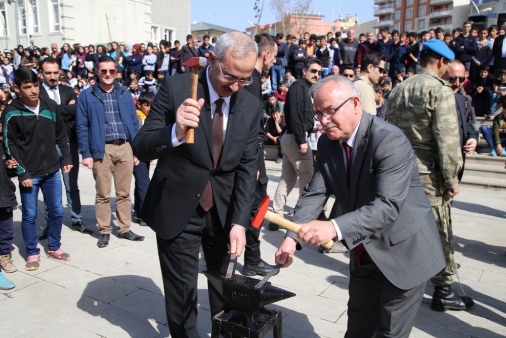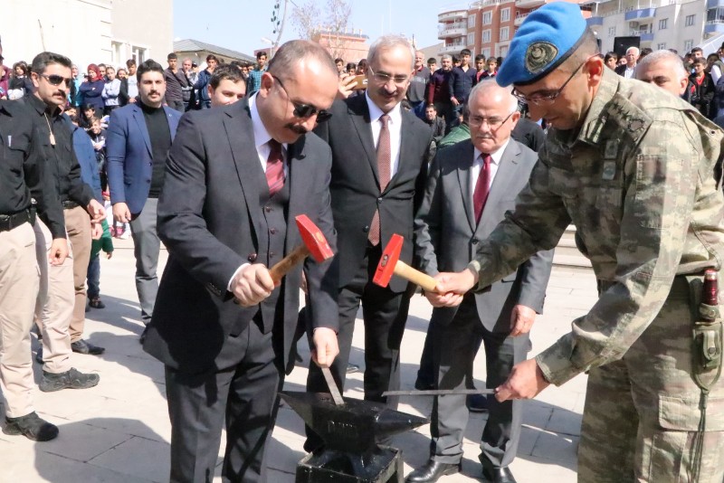 Nevruz ateşinin yakılmasının, Vali Ali Fuat Atik ve protokol üyeleri Örs üzerinde demir dövdü.