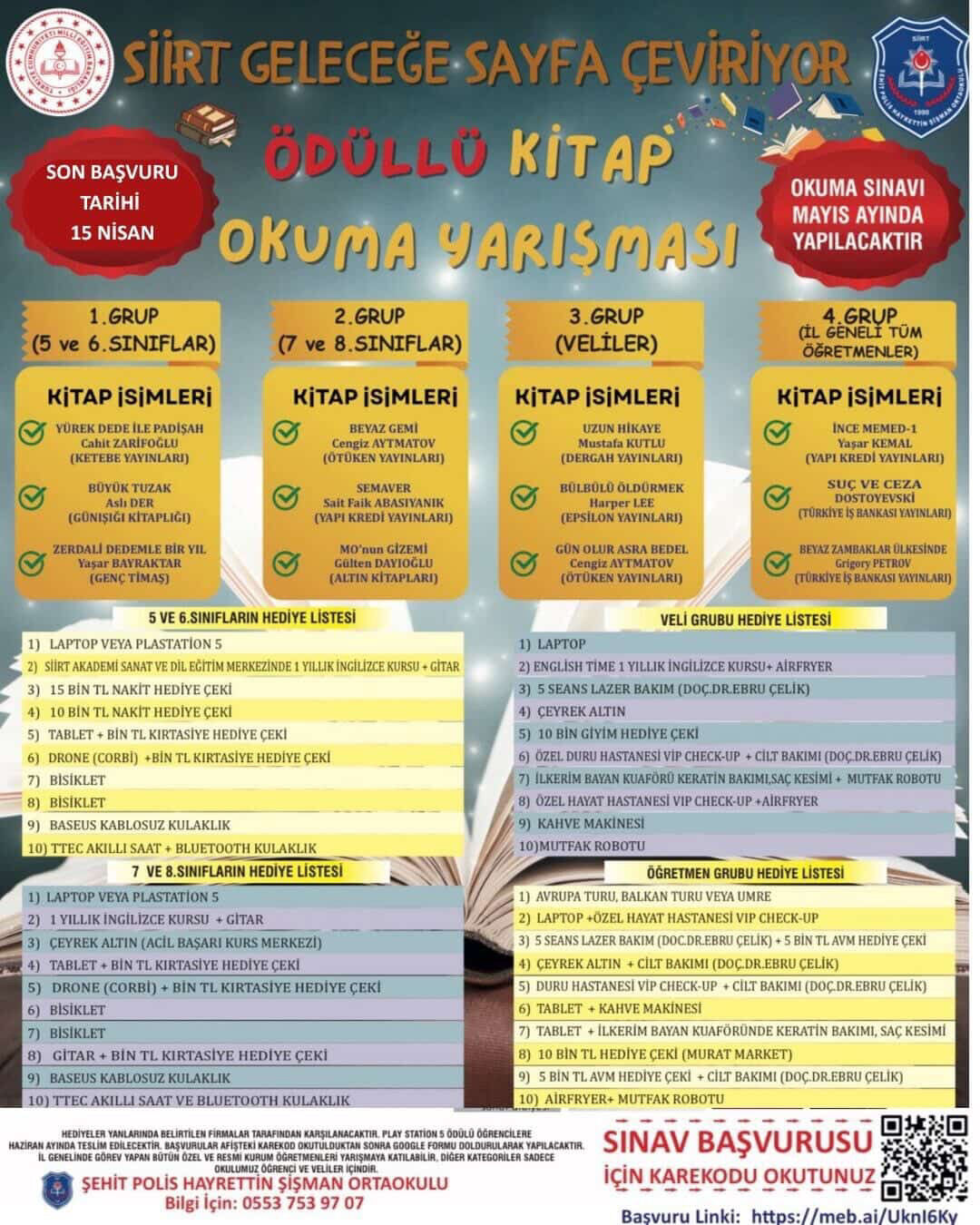 Öğrenciler, öğretmenler ve velilerin katılabileceği yarışmada toplam 9 kitaptan sınav yapılacak.