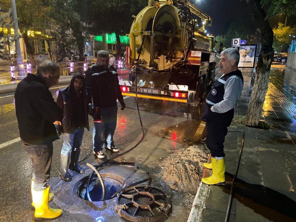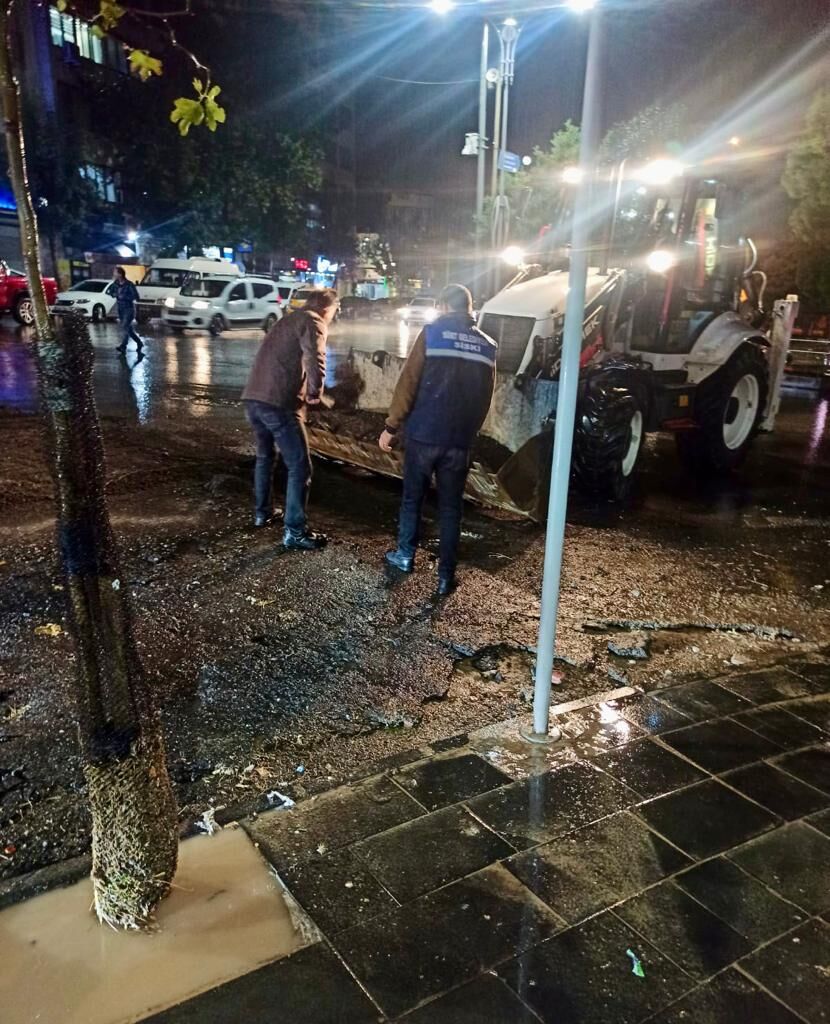 Siirt Belediyesi, il merkezinde etkili olan kuvvetli sağanak yağışı ve dolu yağışı sonrası oluşan su baskınlarına anında müdahale etti.