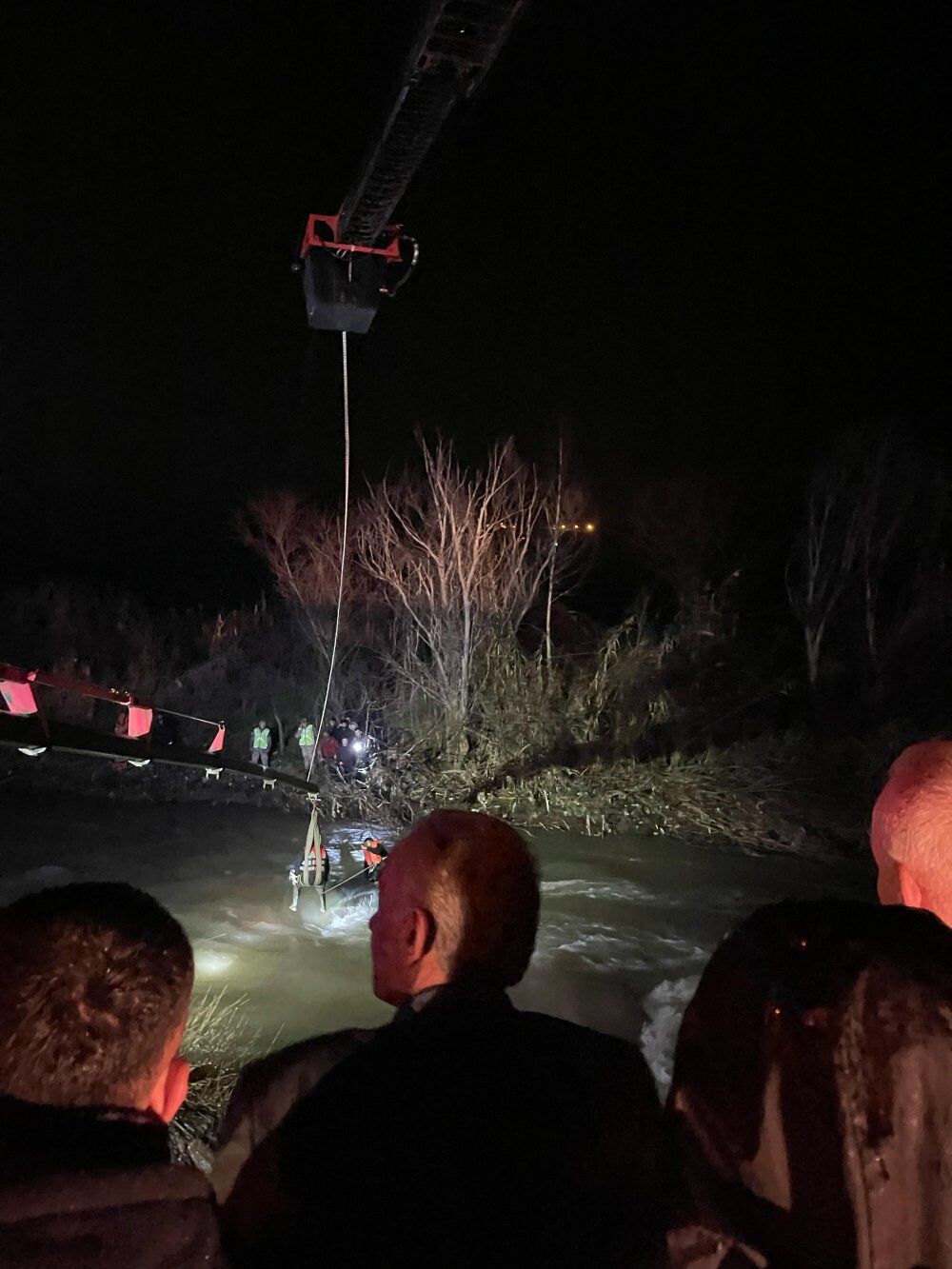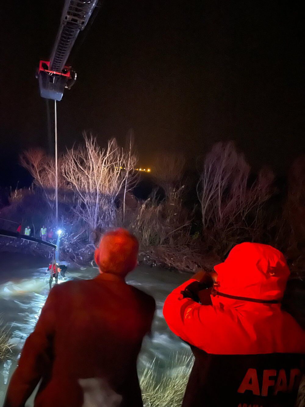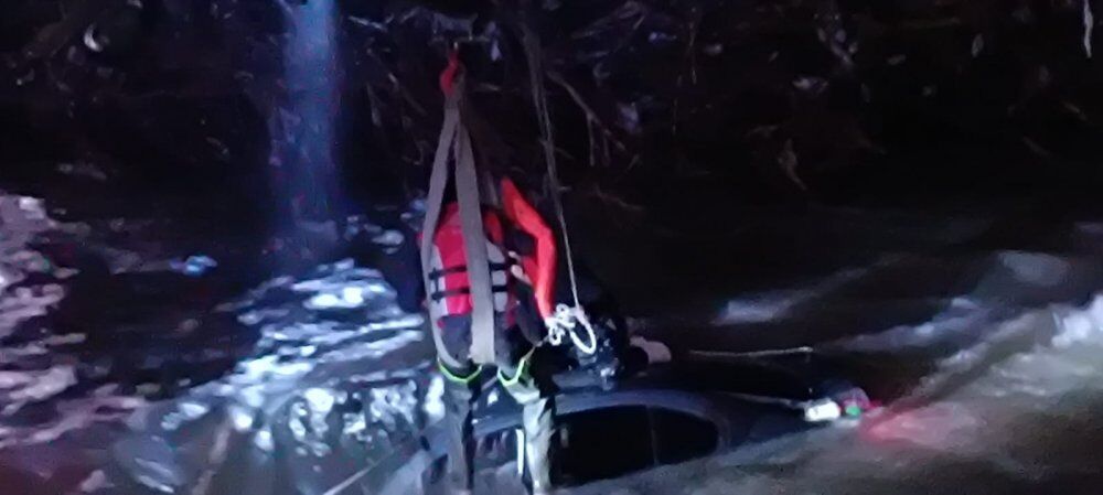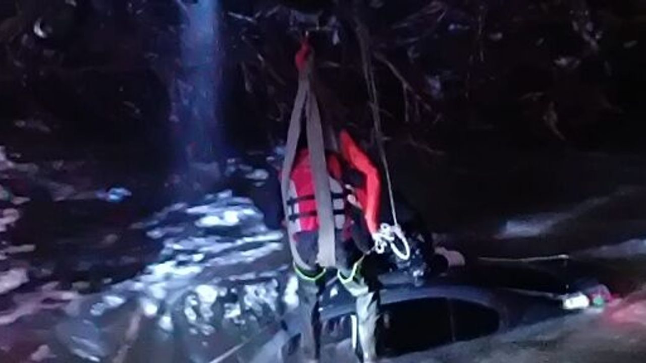 İtfaiye ve AFAD ekipleri, aracıyla suda mahsur kalan sürücüyü, itfaiyenin vinci yardımıyla kurtardı.