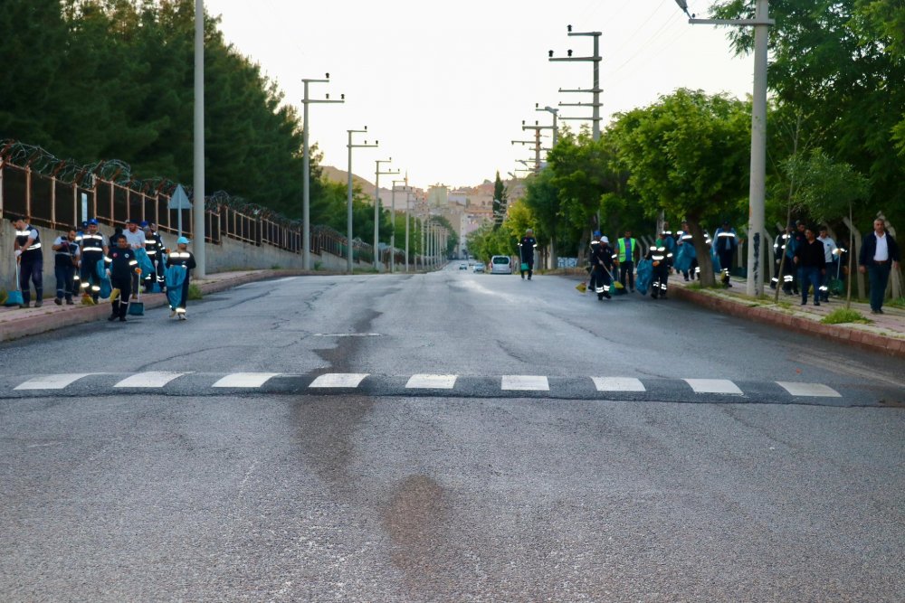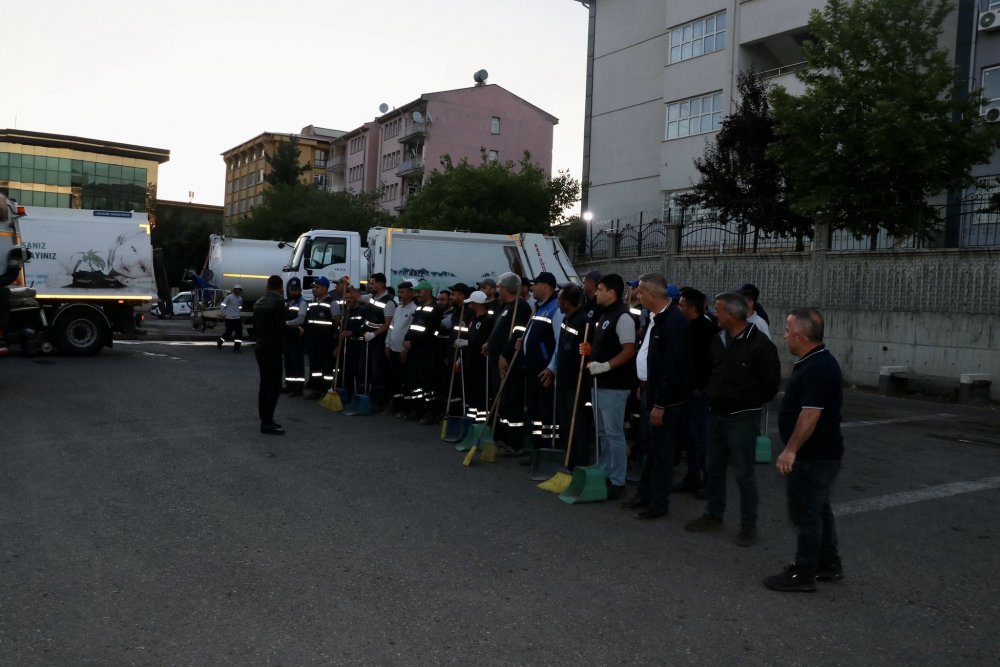 Cuma sabahının ilk ışıklarıyla birlikte başlayan temizlik çalışmaları, okul çevreleri ile cadde ve sokaklarda aralıksız devam ediyor.