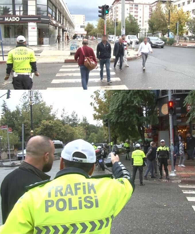Emniyeti Trafik Denetleme Şube Müdürlüğü ekipleri tarafından il merkezindeki yaya geçitlerinde uygulama yapıldı. Uygulamada kendileri için kırmızı ışık yanarken yaya geçidinden geçen vatandaşlara ceza yazıldı.