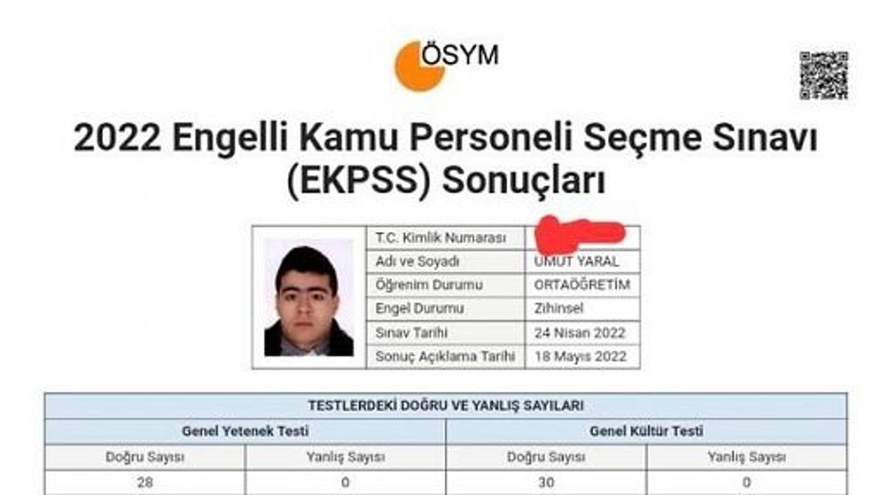 Siirt'in Şirvan ilçesinde yaşayan Umut Yaral, Engelli Kamu Personeli Seçme Sınavında (EKPSS) Orta öğretim Bölümünde Türkiye 5.‘si oldu.