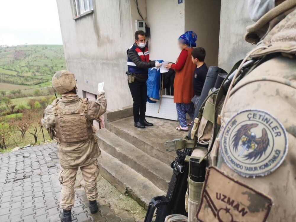 İl Jandarma Komutanlığı ekipleri, karantina uygulanan yerleşim yerlerinde yaşayanların ihtiyaçları için de yardımcı oluyor.