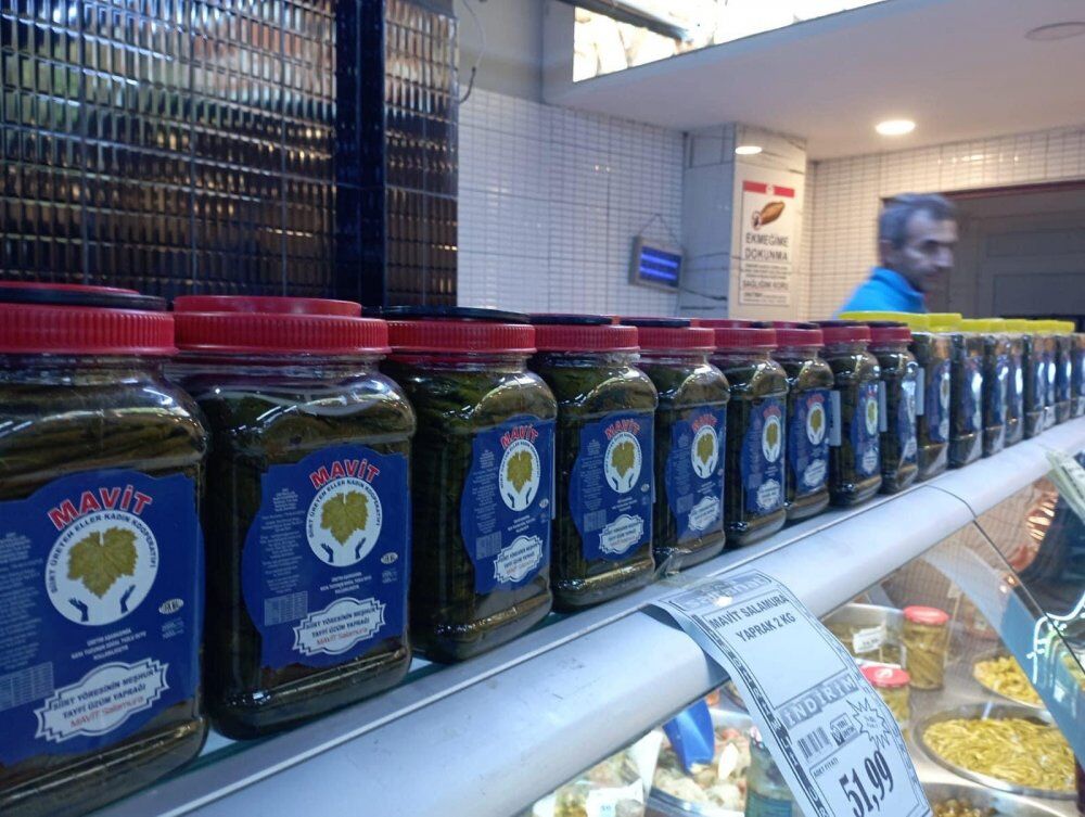 Salamura İşleme Kooperatifinde toplanan üzüm yaprakları köy kadınları tarafından salamura yapılıp Tarım kooperatiflerinde ve iç piyasada satışa sunuluyor.