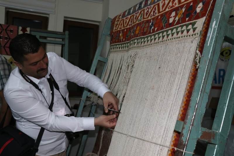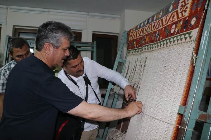 . Bu kilimlerin her santiminde el emeği, göz nuru ve tarih var. Bir kilim bir ayda örülüyor ve satışa sunuluyor. Burada çalışan kadınlar bu şekilde aile bütçelerine katkı sağlıyor.Emeği geçenlere teşekkür etti. Kilimlere şimdiden müşteri var. Katkıda bulunanlara teşekkür ediyoruz." dedi.