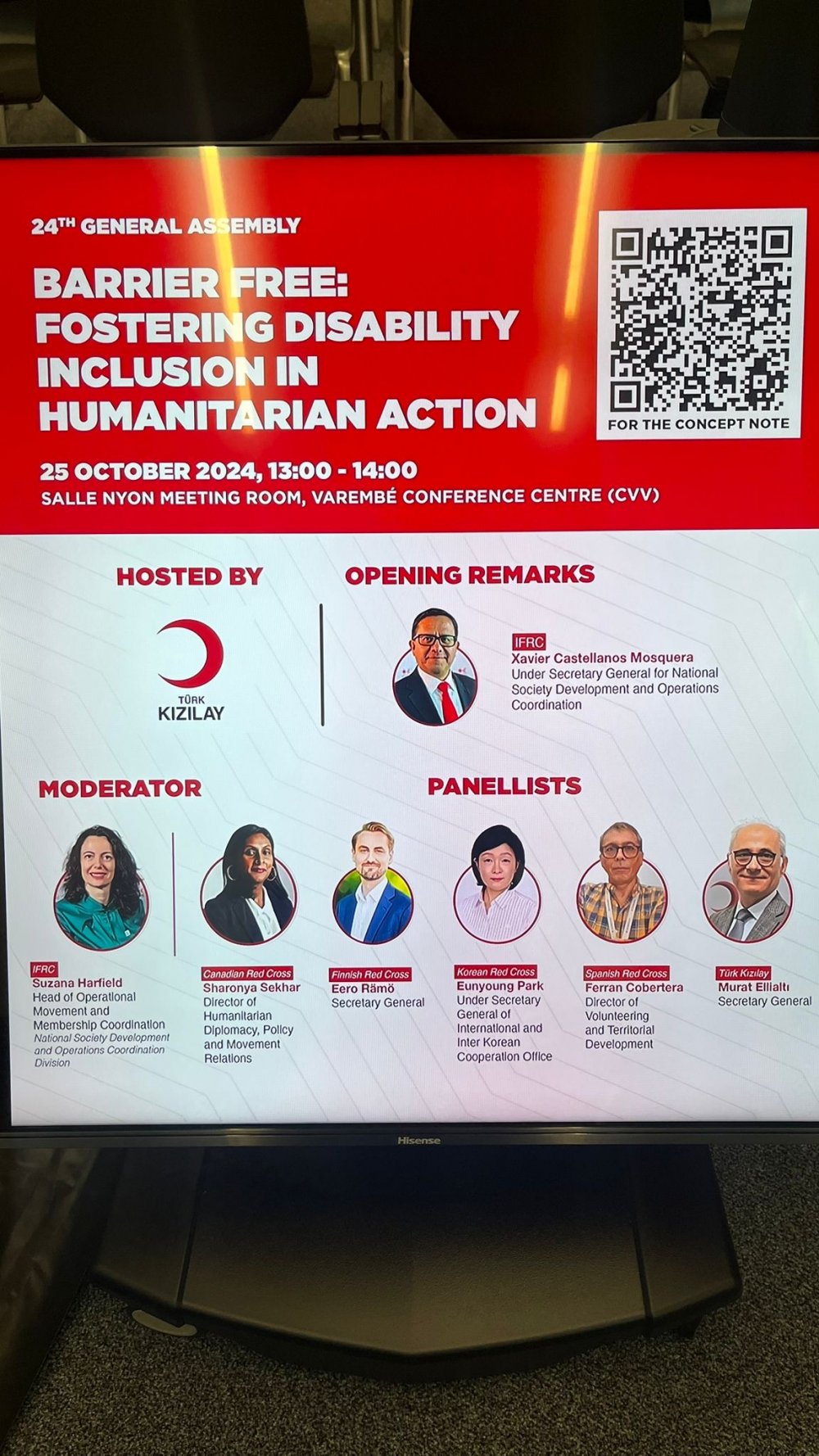 Cenevre’deki program kapsamında Türk Kızılay ev sahipliğinde “Engelsiz: İnsani̇ Yardım Faali̇yetleri̇ne Engelli̇leri̇n Dahi̇l Edi̇lmesi̇ni̇n Teşviki” başlıklı panel ve sempozyum düzenlendi.