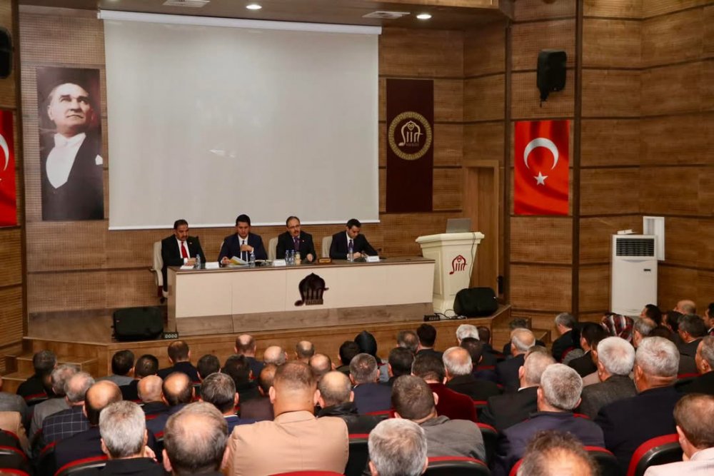 Siirt Valisi Dr. Kemal Kızılkaya, 2024 yılının ilk toplantısında Siirt Merkez, Gökçebağ, Eruh ve Tillo ilçelerinin değerli muhtarlarıyla Siirt Valiliği Konferans Salonunda bir araya geldi.