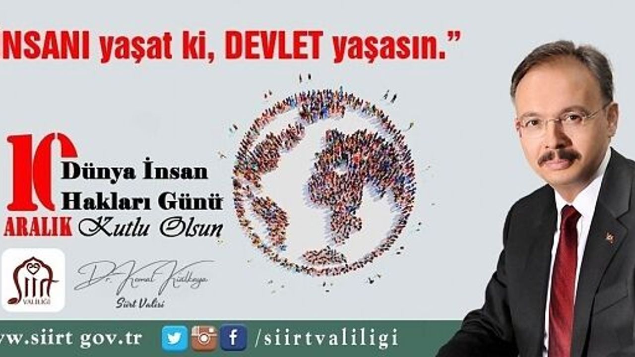 Vali Dr. Kemal Kızılkaya, ‘10 Aralık Dünya İnsan Hakları Günü’ Dolayısıyla Bir Mesaj Yayınladı.