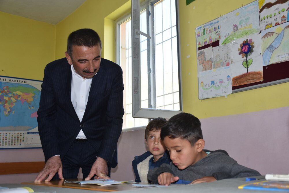 Yanıkses köyü İlkokulunu da ziyaret eden Vali Hacıbektaşoğlu, öğrencilerle sohbet etti, çeşitli hediyeler verdi.