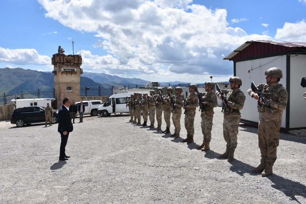 Kahraman Mehmetçiklerle bir süre sohbet eden Vali Hacıbektaşoğlu, üs bölgede incelemelerde bulunarak, bölgenin güvenlik ve asayişi hakkında askeri yetkililerden bilgi aldı.