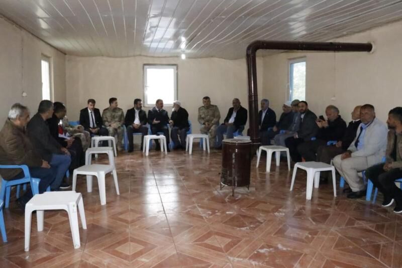 Mezarlıktaki anma töreninin ardından köyün taziye evine geçen Vali Hacı Bektaşoğlu köy muhtarı ve Mehmet Emin Şen adlı yaşlı gazi ve köylülerle sohbet etti ve köyün sorun ile talepleri hakkında bilgi aldı.