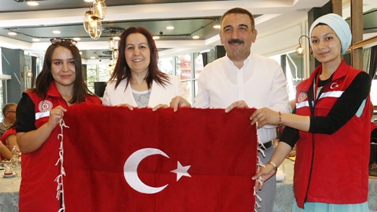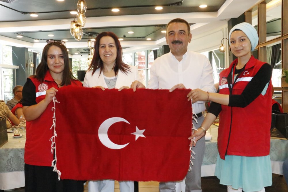 Program sonunda, Vali Hacıbektaşoğlu öğrencilere Şanlı Türk Bayrağı işlemeli bir tiftik battaniyesi ve çeşitli hediyeler verdi.