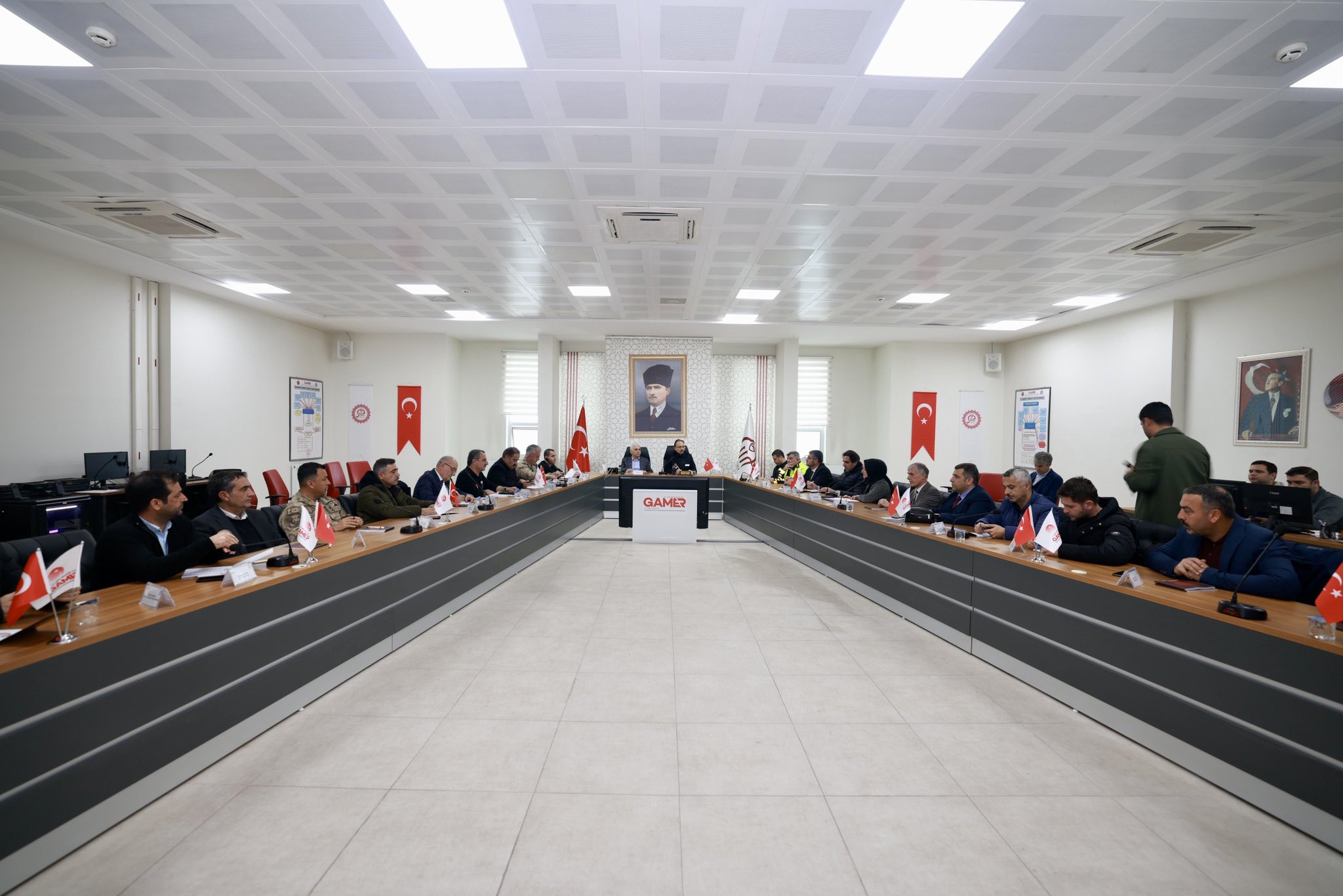 GAMER’de gerçekleştirilen toplantıya; Vali Yardımcıları Birkan Tatlısöz ve Ömer Faruk Gökçe, İl Emniyet Müdürü Necmettin Öztürk, İl Jandarma Komutanı Tuğgeneral Uğur Özmen’in yanı sıra emniyet, jandarma, belediye, İl Özel İdaresi, Karayolları, AFAD, sağlık, millî eğitim ve ilgili kurumların temsilcileri katıldı.