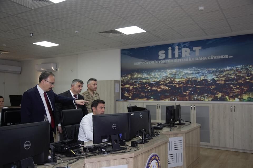 Vali Dr. Kemal Kızılkaya, beraberinde İl Emniyet Müdürü Necmettin Öztürk, İl Jandarma Komutanı Tuğgeneral Emrullah Büyük ve güvenlik birimlerinin yetkilileri ile Siirt Emniyet Müdürlüğü Kent Güvenlik Yönetim Sistemi Merkezi’nde (KGYS) incelemelerde bulundu.
