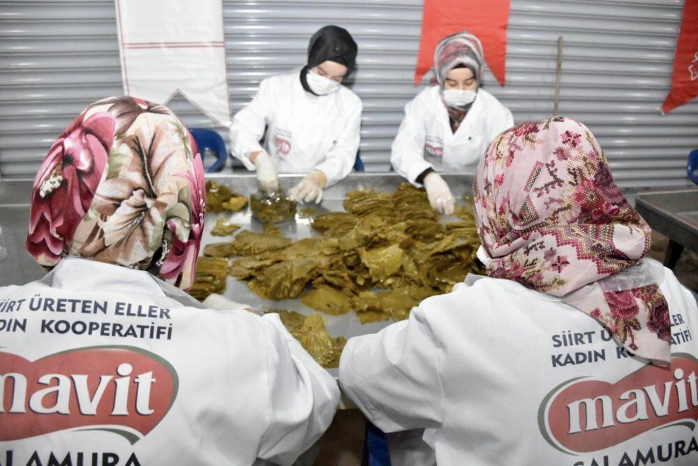 Siirt'in Şirvan ilçesine bağlı Pirinçlik Köyünde 7 kadının bir araya gelerek 650 bin TL'ye kurduğu ''Üreten Eller Kadın Kooperatifi Tayfi Üzüm Yaprağı Salamura Tesisi'' işlevine devam ediyor.