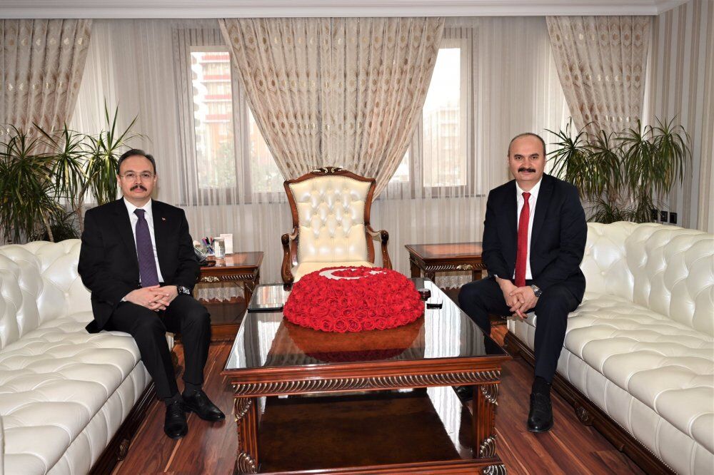 Valilik ziyaretinde şeref defterini imzalayan Vali Kızılkaya, Vali Canalp’la makamında bir süre görüşerek, görevinde başarılar diledi.